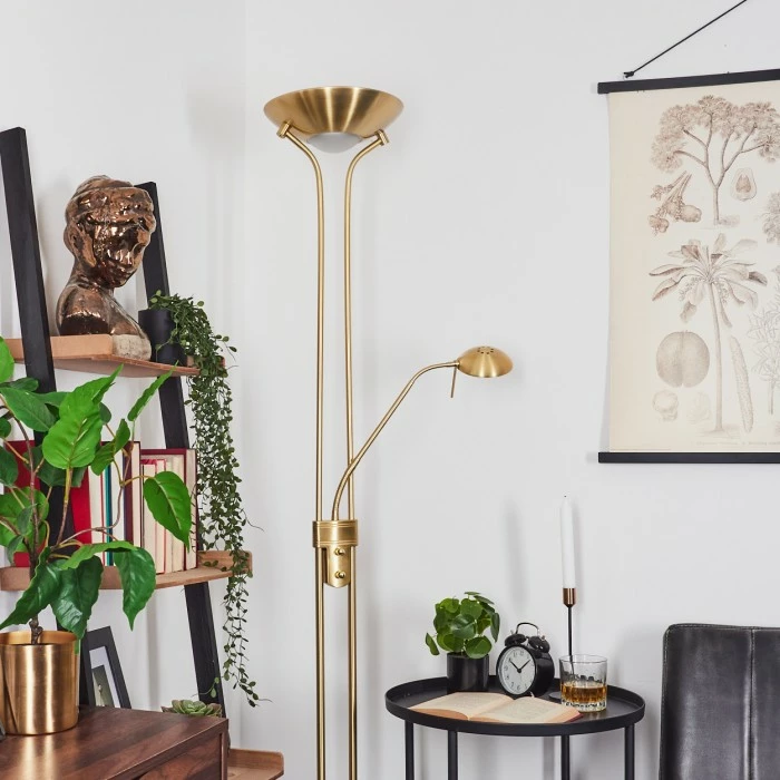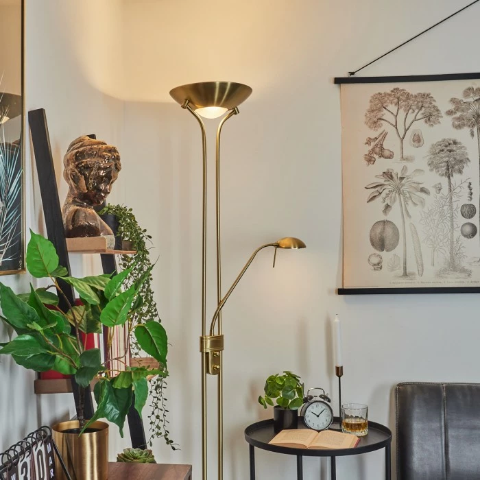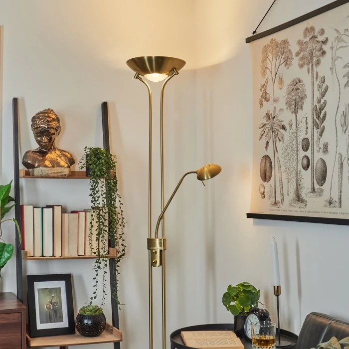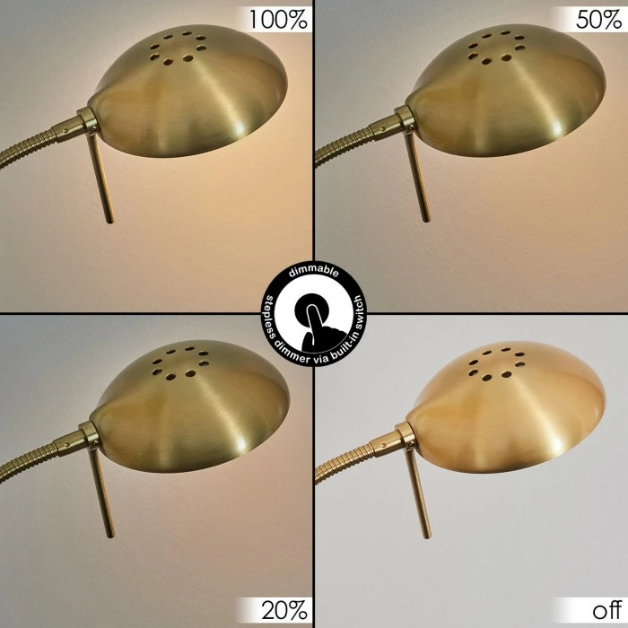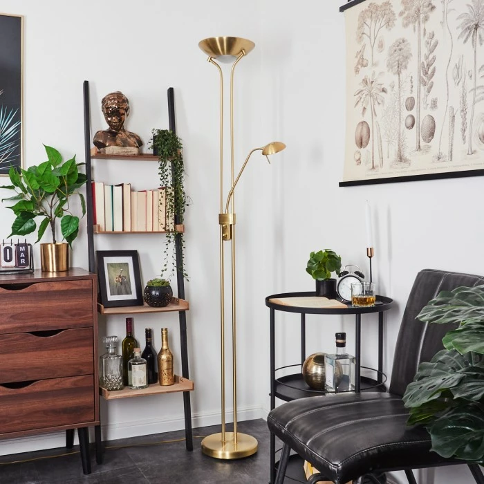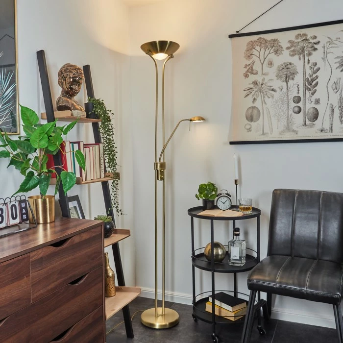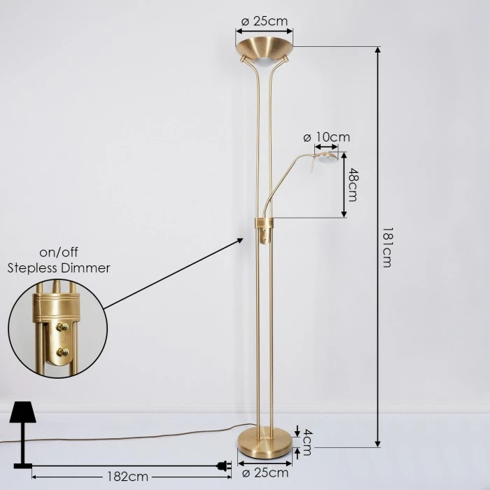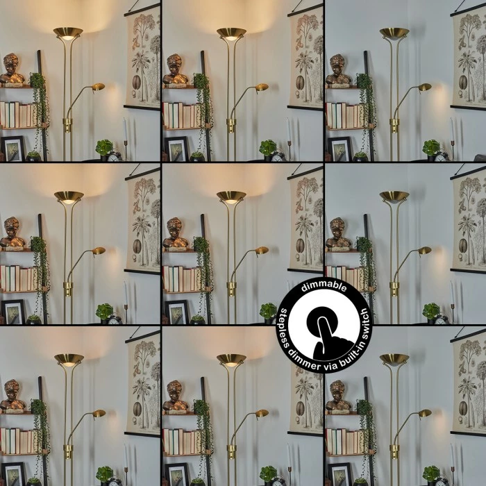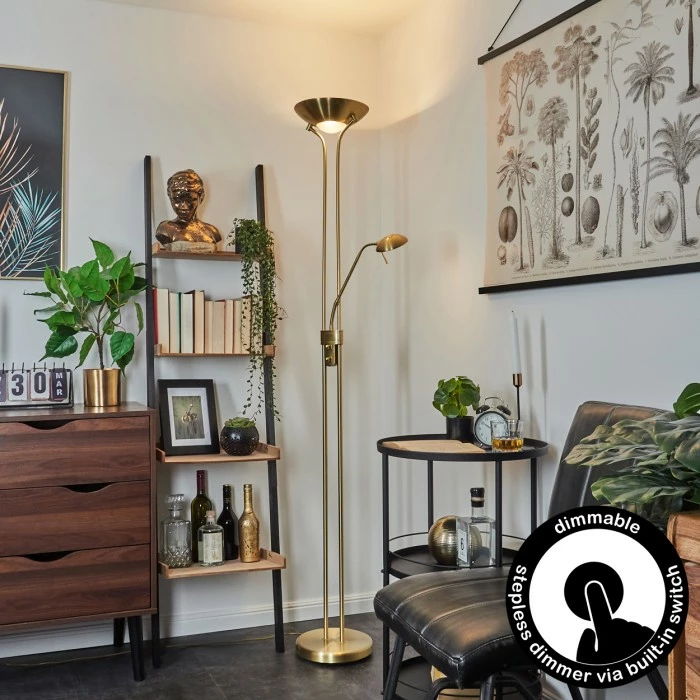 Diese Stehleuchte verfügt über einen An-/Ausschalter am Gehäuse, sowie einen Tastdimmer.
