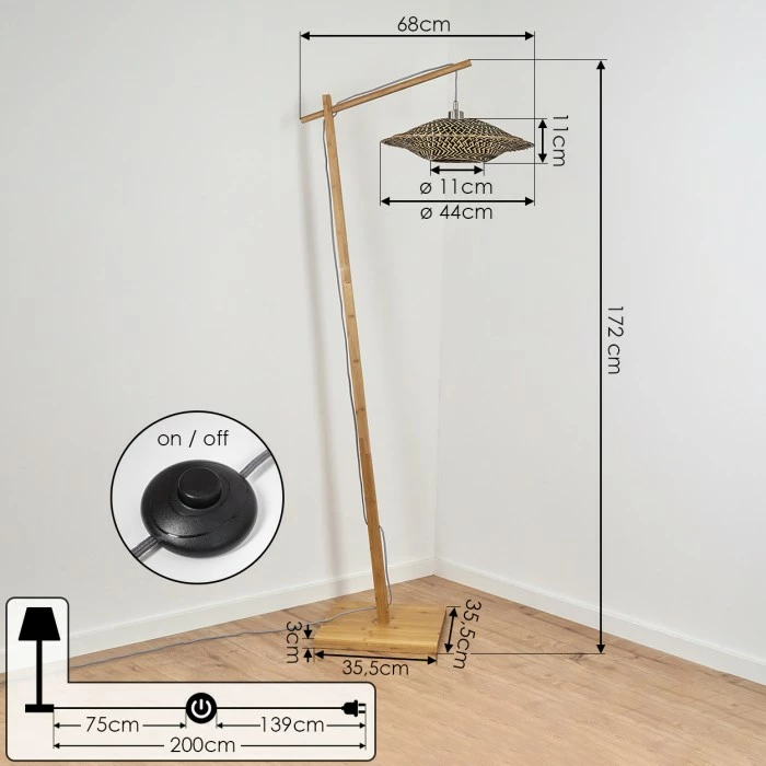Diese Stehleuchte verfügt über einen Fußschalter am Kabel.